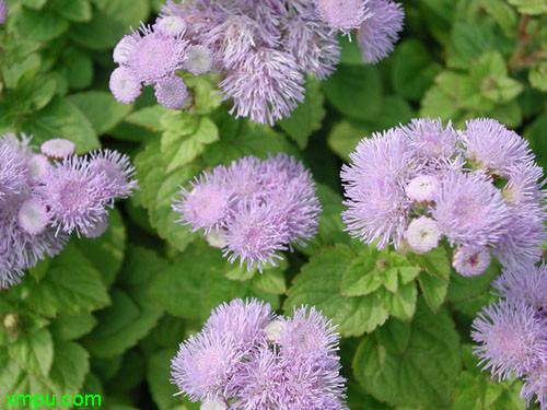 一年生草本,生于海拔2800m以下的田园、荒地、山坡草地、山谷灌丛等处。结实率高,繁殖速度快。藿香蓟主要有蓝色、白色和堇紫色3种色系,植株可长到20~25厘米高。最好是用作盆栽及庭院中的镶边植物,或点缀岩石园,或作室内观赏。若大面积应用于花坛,作基调色配置,也有独特效果。 藿香蓟为菊科藿香蓟属多年生草本植物,二年生或多年生草本,每克种子大约有7000粒。该种在26~29℃温度下,播种后7~10天发芽,发芽期要放在日光下。花小,头状花序密生枝顶。耐修剪,剪后可再次开花。多用种子繁殖,但也可扦插。播种后15~20天就可移植,大约13周就可开花,在南方地区11~12周就可开花。